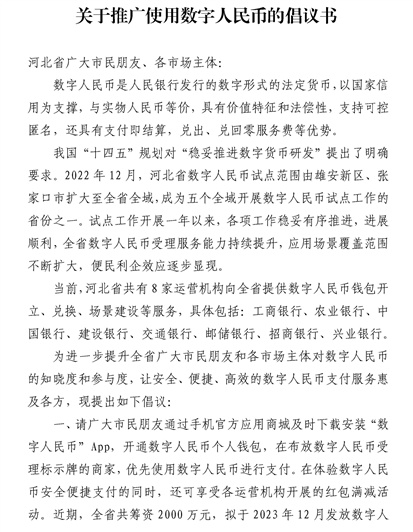 轉發(fā)“關于推廣使用數(shù)字人民幣的倡議書”